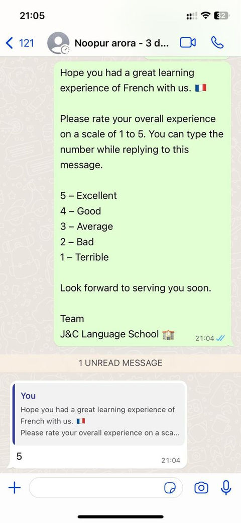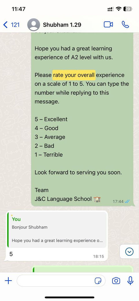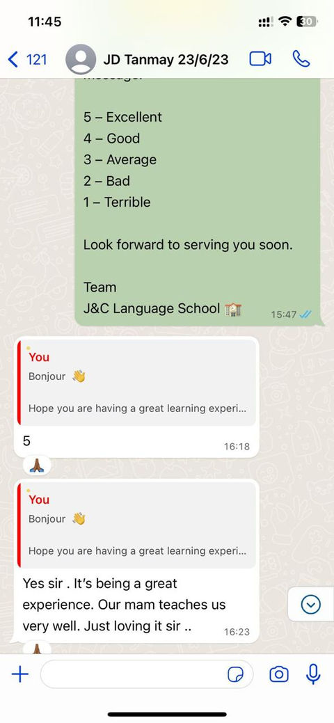 The French lessons were very interesting, fun & informative. Plenty of written, listening & speaking practice is given. Resources provided are also very good. J&C is one of the best language institution. My overall experience was formidable.