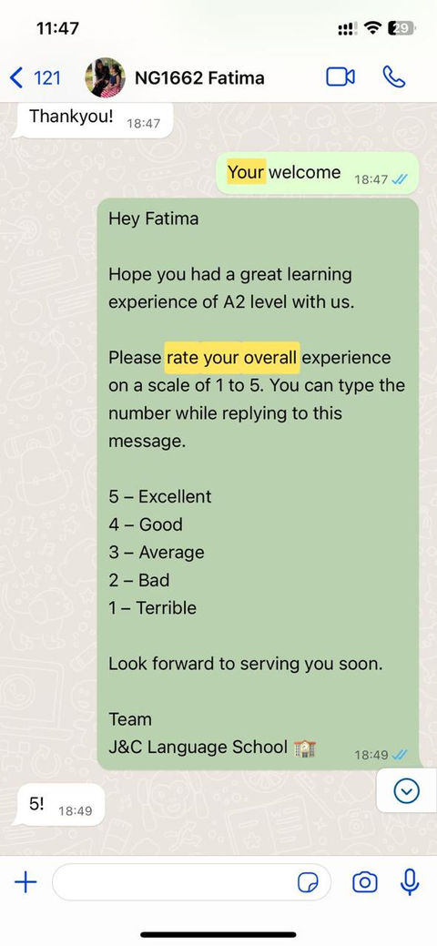 I'm glad to join and I am very impressed with J&C Language School approach towards teaching. The teachers are professional & experienced, The curriculum is designed perfectly to help students achieve their language goals quickly and effectively